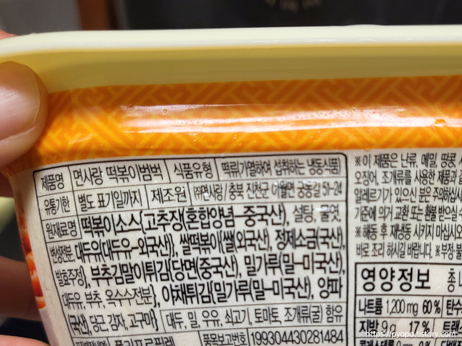 종종 간편하게 전자레인지 돌려서 먹는 냉동 떡볶이입니다.